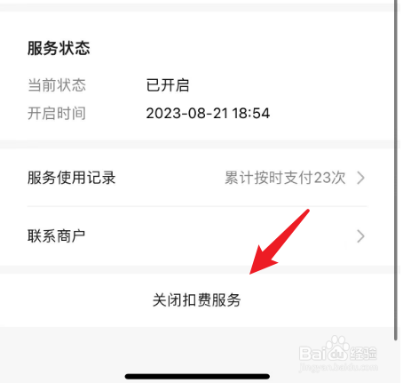 进入先用后付页面,点击底部的封闭扣用度办事就可以了。