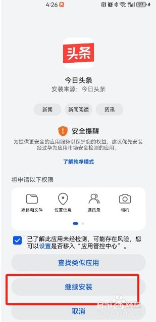 第五步:此时,已经封闭了加强防护模式,就可以下载初应用市场以外的APP了,咱继续往下走,找到下载好的安装包,点击继续安装