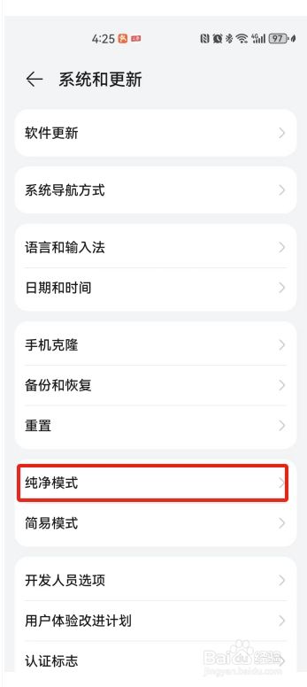 第三步:点开体系和更新后,呈现下面画面找到纯净模式,并点开纯净模式
