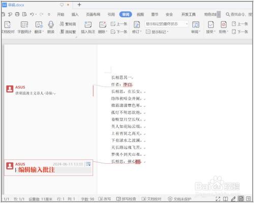 要是找不到做好的讲明,就依次打开"核阅-显示标志",勾选讲明即可显示。