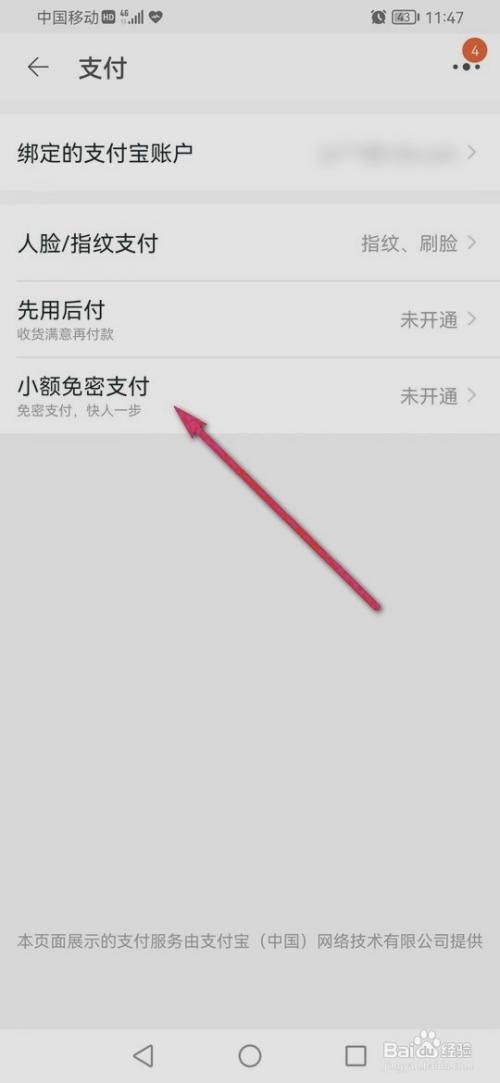 第三步:接着,点击小额免密支付进入。