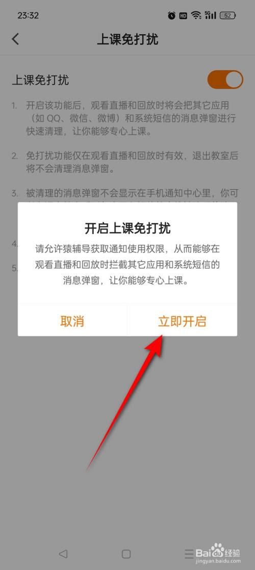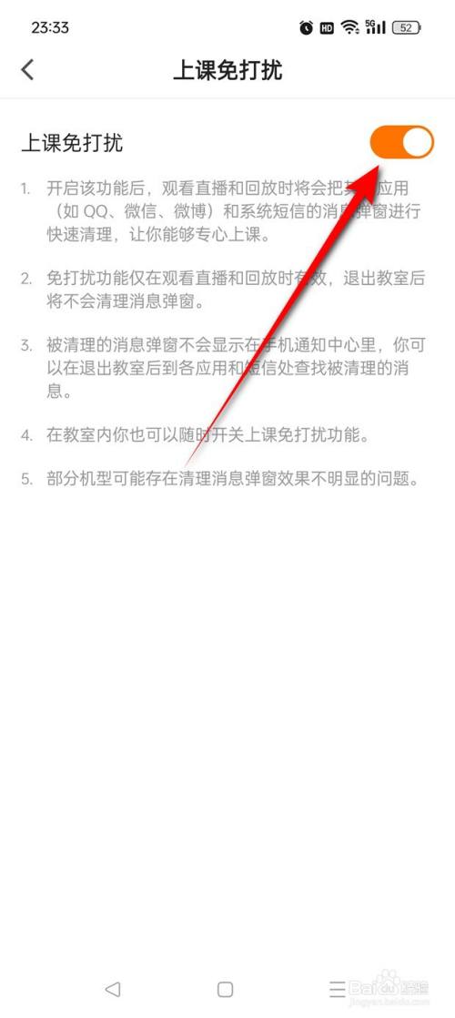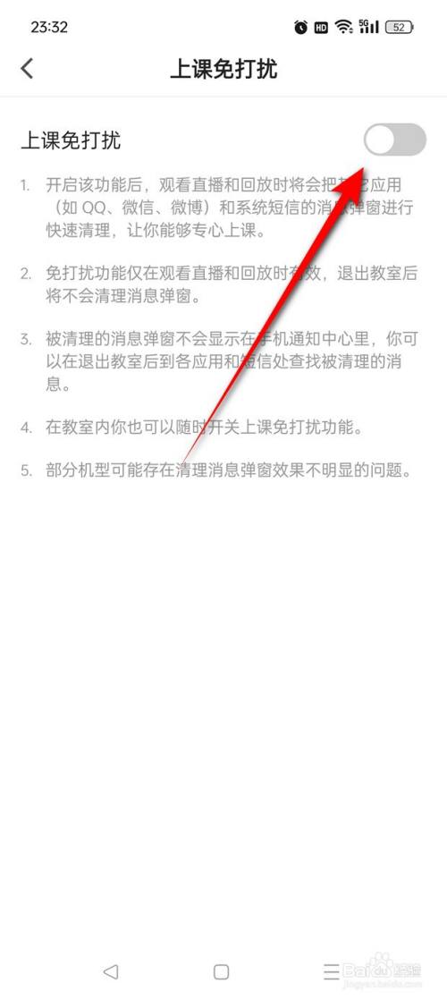 将"上课免打搅"旁的小滑块点亮即可开启。