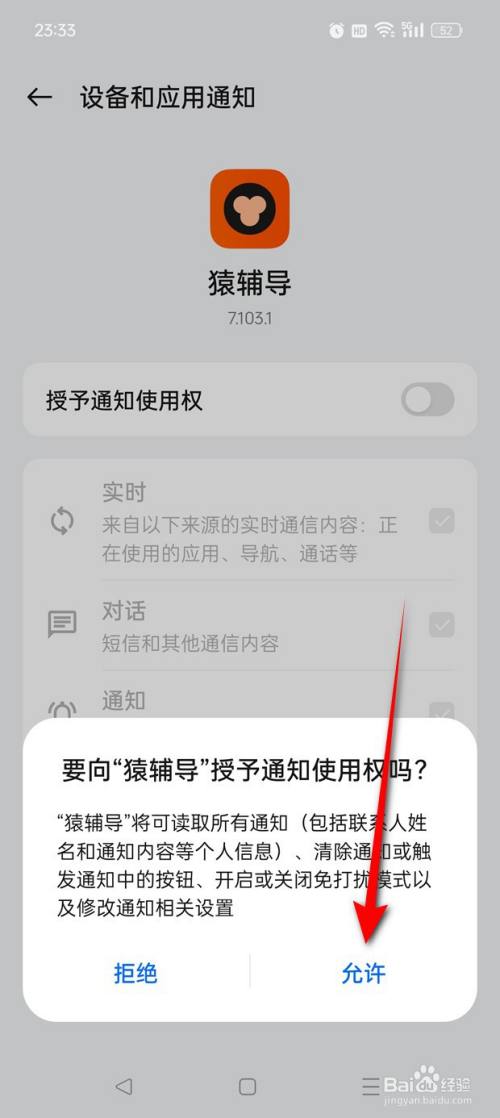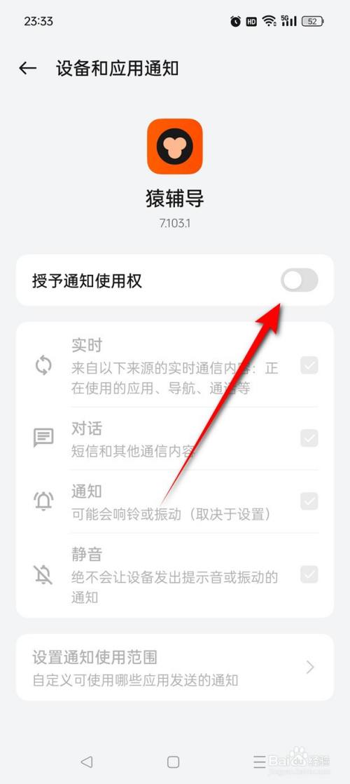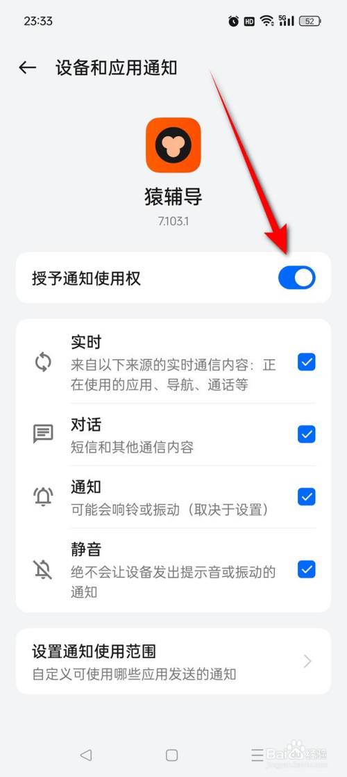 点击"授予通知利用权"旁的小滑块。