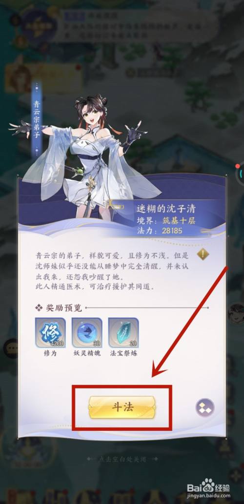在含混的沈子清页面,点击斗法。