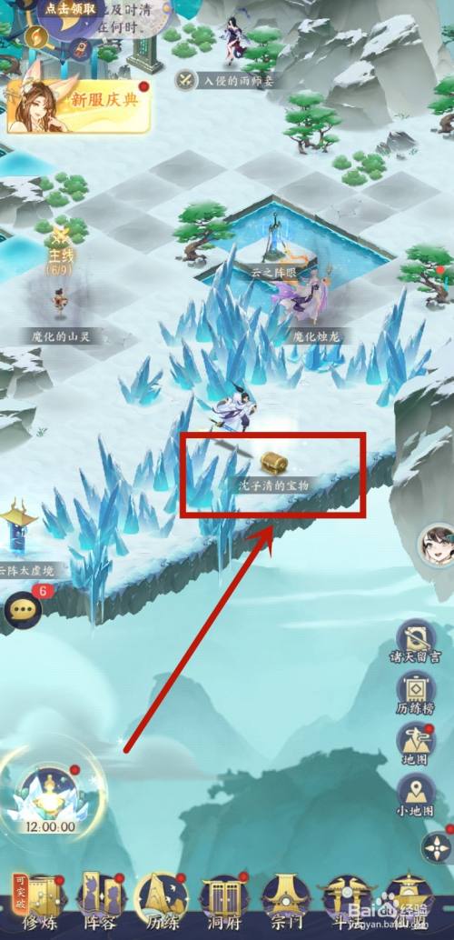 进入手游后,在青云阵中,点击离奇的棺材。