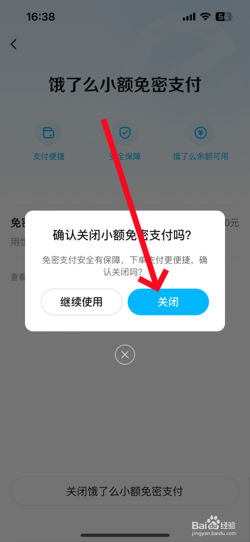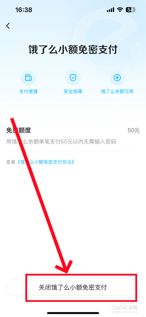 点击底部"封闭饿了么小额免密支付"。