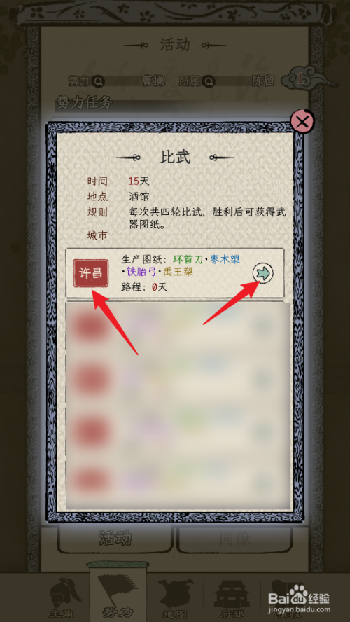 工具/原料小米13MIUI14三国人生模拟1.1.3方法/步骤1第一步:在运动主页,点击【交锋】2第二步:在交锋主页,选择许昌,点击【前去】3第三步:进入许昌酒馆主页,点击【交锋】4第四步:在弹窗中,点击【起头交锋】5第五步:交锋完当作后,点击【遴选奖品】6第六步:在奖品界面,可选择图纸【枣木槊】,点击【确定】即可END