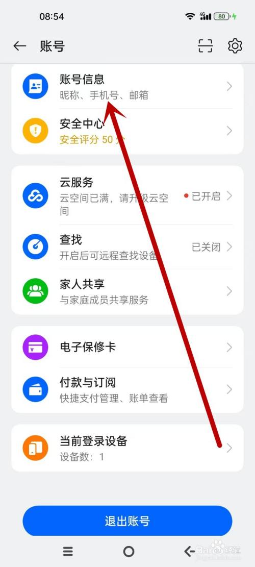 最后,找到【账号信息】选项,如下图所示,点击即可修改。
