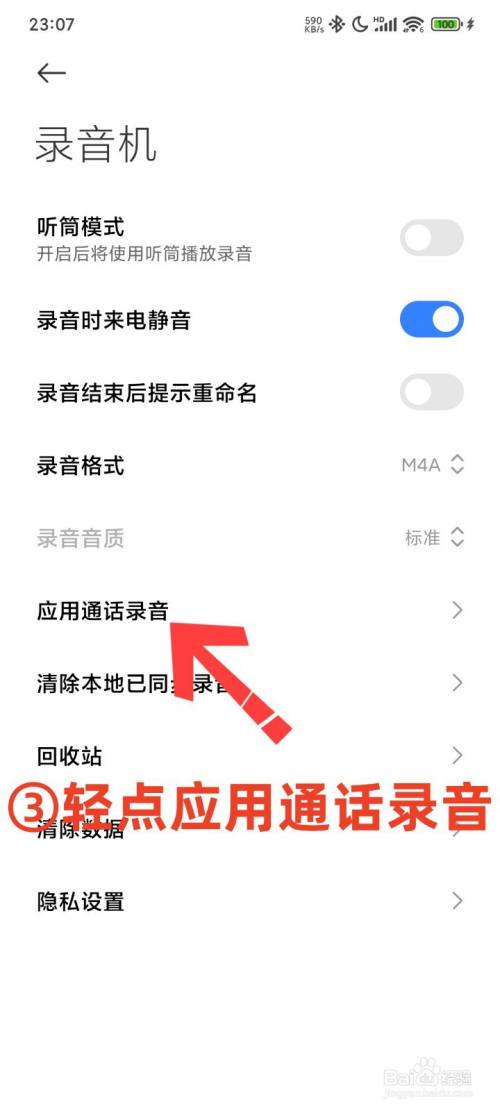 紧接着选择打开微信右侧的开关,这样当微信来语音德律风后,手机就可以主动对微信通话灌音。
