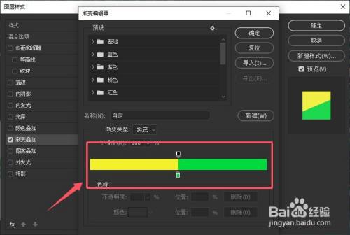 在渐变编纂器中,调解色标的位置,点击【确定】。