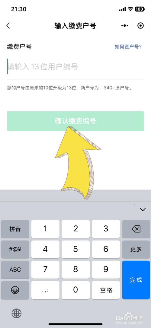 键入用户编号,点击毙独确认缴茄激费编号选项。