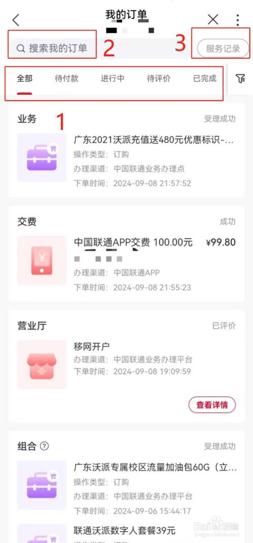 第四步:进入【我的订单】页面,可以在上方导航栏中按照"状态"选择查询订单。