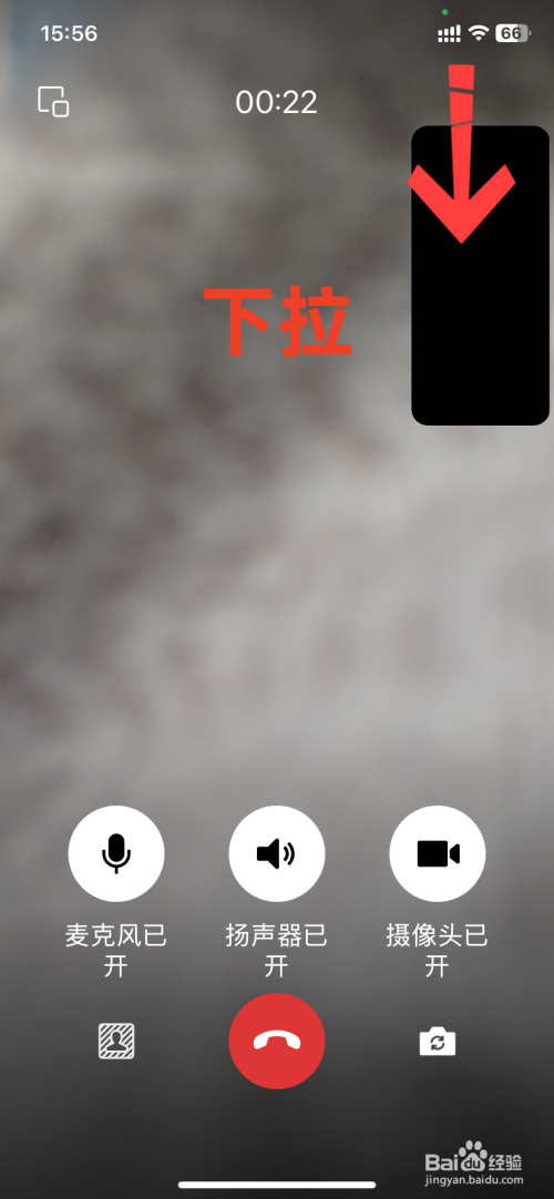 视频通话接通后,在手机右上角下拉屏幕。