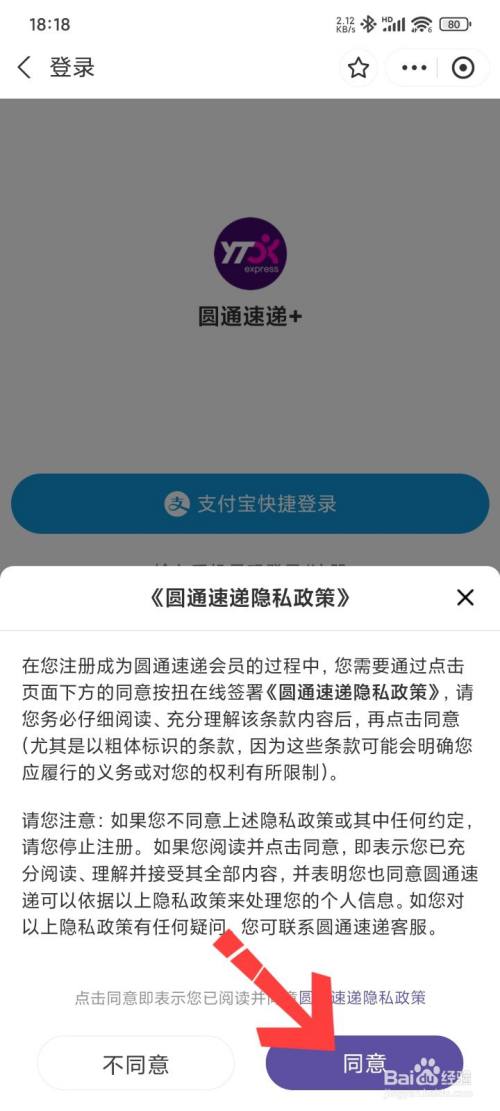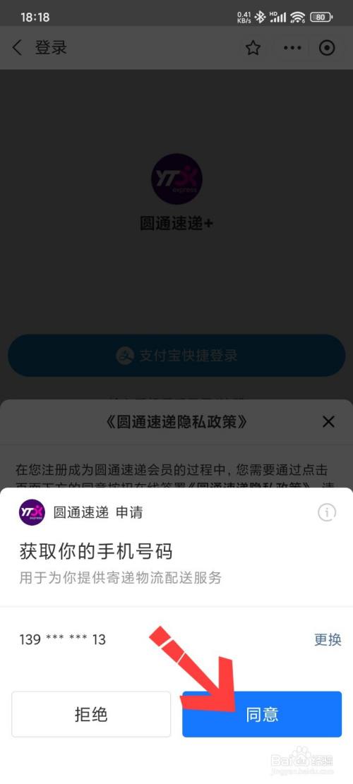 最后选择轻点同意,这样就查询圆通快递成功。