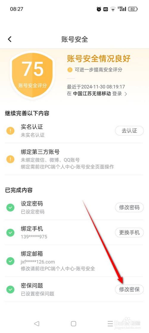 点击"修改密保"。