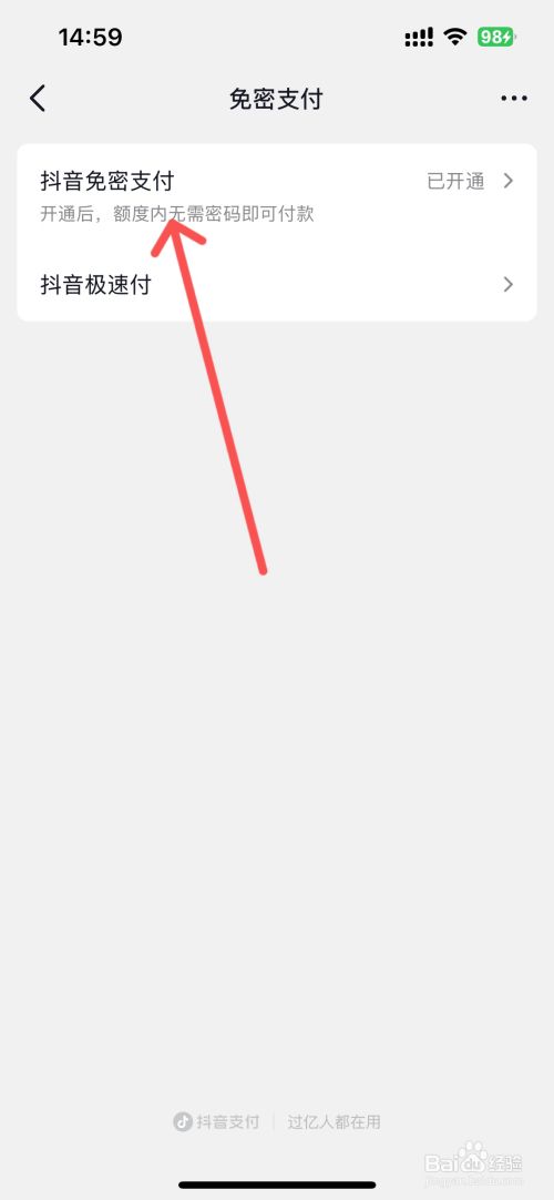 如下,点击【抖音免密支付】功能