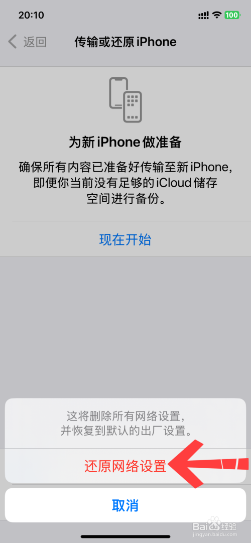 最后单击还原网络设置,这样wifi就可以正常的连接。
