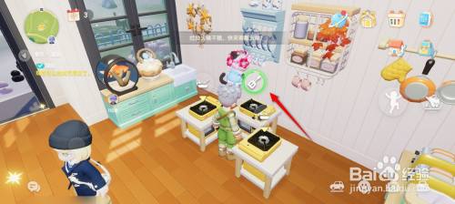 在心动小镇手游,来到灶台前,点击烹制图标。