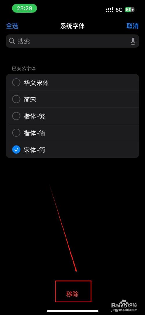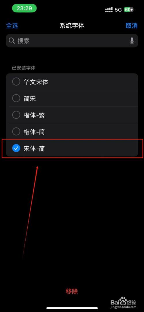 点击勾选需要进行删除的字体;