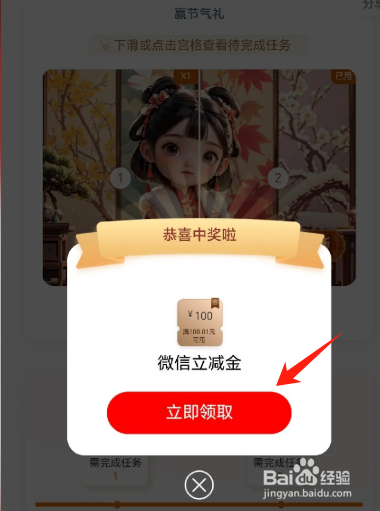 抽奖有概率活动:1元、2元、5元、100元或数字藏品,立减金可在卡包中查看到。