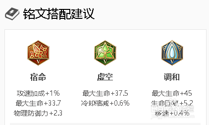 1.红色符文:宿命(最大生命值+攻速加成+物理防御)