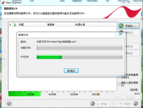 刻录软件开始分析,新添加的音乐文件。