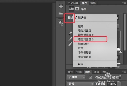 新建后,在右边的预设下拉框里,选择‘增加对比度3’