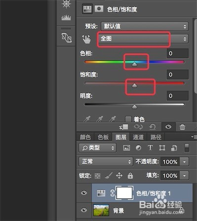 点击右边的下拉选择框,选择‘青色’,然后细调一下色相和饱和度的值