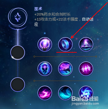 选择“巫术”作为“副系符文”(强化技能和资源控制)。