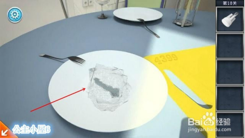点击右侧桌面部分,收取一个开关部件 。再点击圆桌,收取盘子上的冰块。