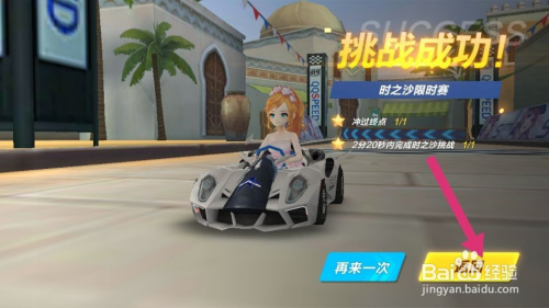 完成第一项考试点击返回键后,再选择第二项考试,第二项考试是要在2分20秒内完成时之沙赛道的考试,这个考试很容易过,比第一项好过,考完后点击返回键,如图。