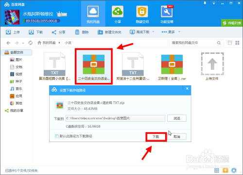上传/下载资源:百度网盘的内容可以下载到本地保存,也可以把本地资源上传到网盘里。