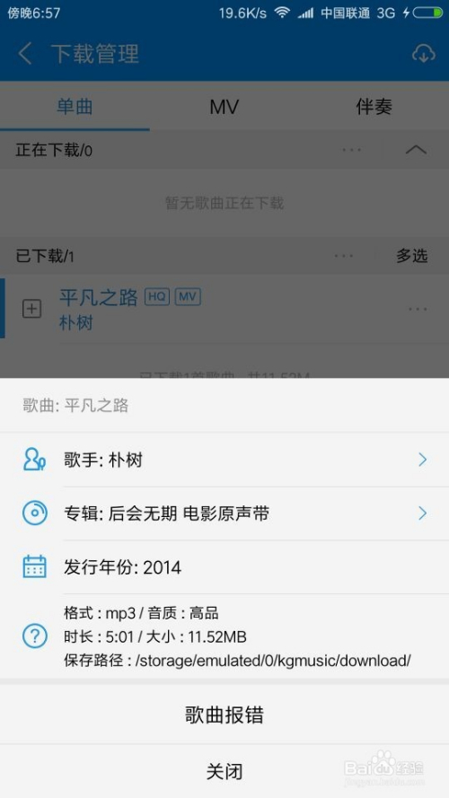 下载好了之后可以看到详细的信息,比如歌曲的格式 存储位置等
