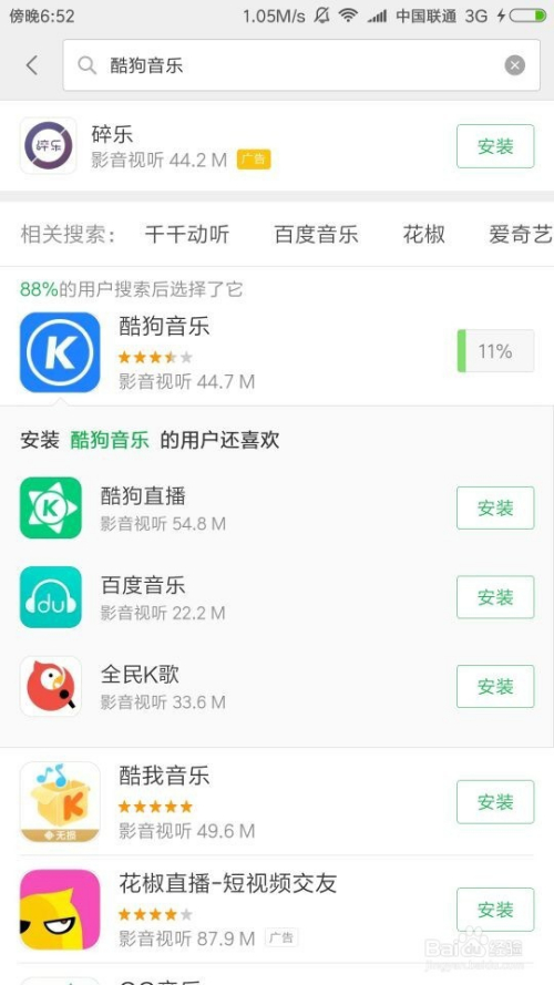 先在应用商店下载安装酷狗。