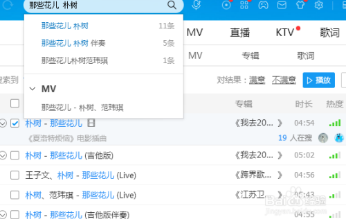 随便输入一首歌曲搜索,搜索之后点击