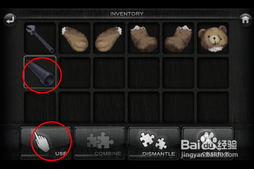 第一步是拾取有用的道具,这里可以拾取的道具包括火柴,布娃娃,瓶装水和扳手