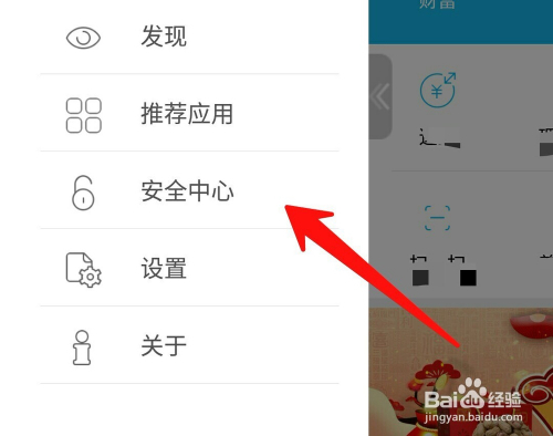 然后在右侧弹出的窗口中,点击图示位置中的“安全中心”,进入软件的安全中心。