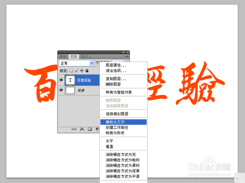 选择文字图层,右键单击从下拉菜单中选择栅格化文字选项。,将文字进行栅格化转换为普通图层。