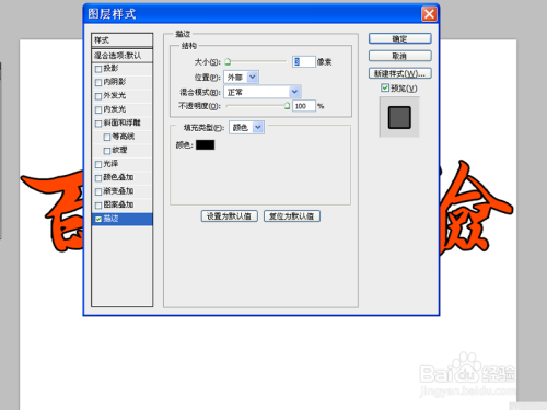 执行图层-图层样式-描边命令,设置大小为3像素,不透明度为100,颜色设置为橘红色。