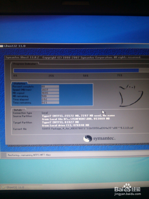 安装系统,这里使用的是GHOST版的WIN7,安装起来快一些。