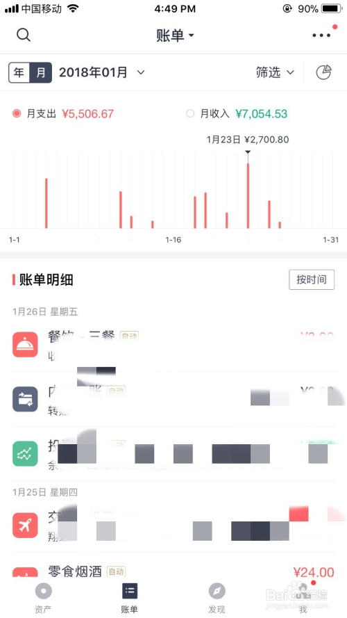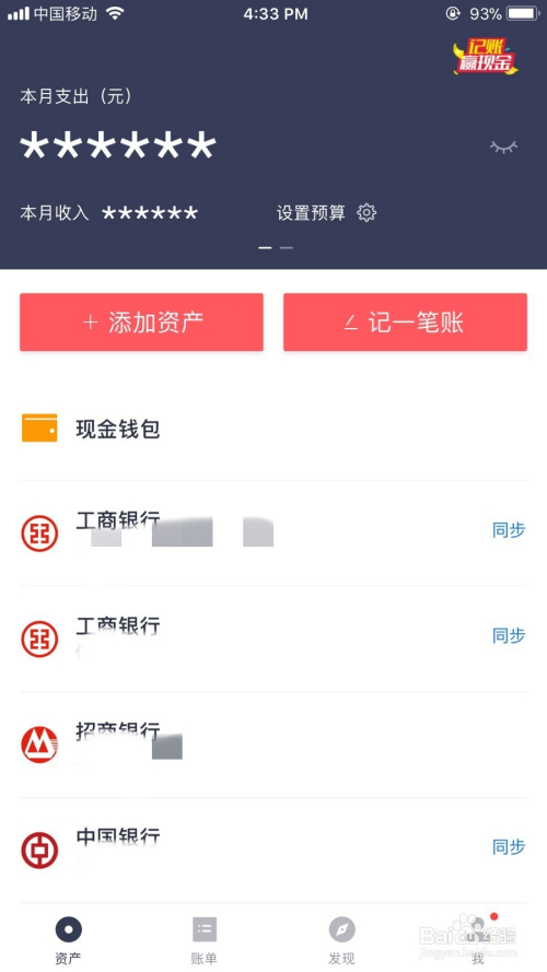 网易有钱的界面,在这几款里我是最喜欢的。不知道是不是因为听网易云音乐太多对这种蓝黑、白、红的设计风格没有免疫力了,感觉很温暖,界面又很清晰。主要大功能资产、账单、发现、我(个人界面),以及小功能分类:流出、流入、内部转账等设计的都很容易识别,记账界面的小logo一点不繁杂多余,挺有扁平化风格,总体是喜欢的。