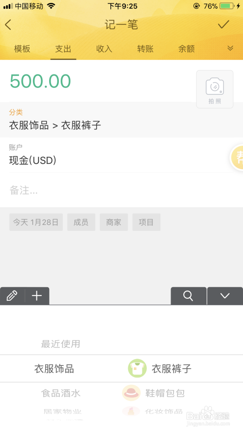 虽然刚刚把随手记的界面设计批了一通,不过记账功能的设计还是很大而全的。首页可以设置预算,预算余额用柱形表示,随着预算总额的接近,柱形的高度会降低。点击“记一笔”右侧的饼图,可以进入报表页面,和挖财类似,也可以通过转动饼图来查看每类收支所占百分比,再点击数额,就能看到详细流水。记账初期会被各种标签绕晕,熟练之后,我对于这种详细的类目设置,接受度高多了。不过进入到相关功能后,首页下方6个功能类目切换栏就会消失,想要切换到其他功能,还要返回首页,这一点不太方便。