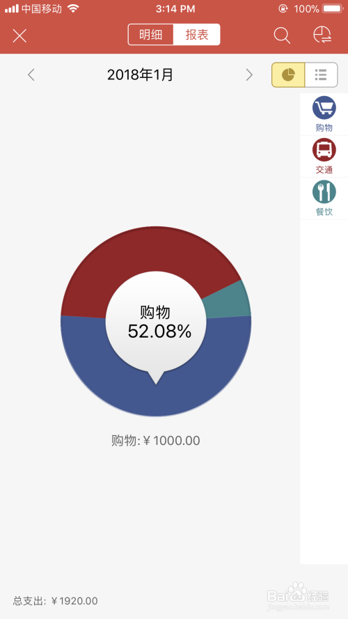 报表的话,右侧用文字列出,左侧图标分类,滑动方式查看比例比较有意思,不过也多了一个步骤,整体性分析功能也降低一个量级。