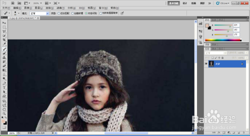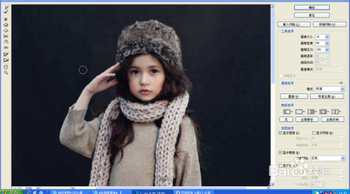放大人物头像,选择污点修复工具,对脸上的痘痘和斑点进行擦除