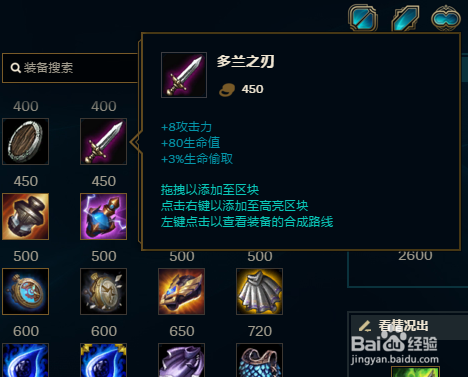 首先可以带常规的多兰剑,这样前期可打得更凶,女警前期利用手长优势还是挺猛的。