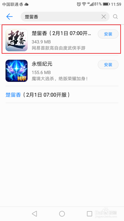 第三步可以看到游戏已经被搜索到了,点击安装,如下图所示: