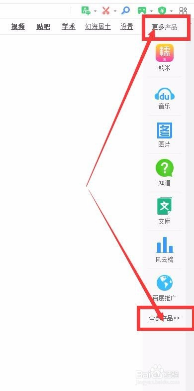 或者通过登陆百度个人信息在右侧找到“更多产品”按照图示流程操作。