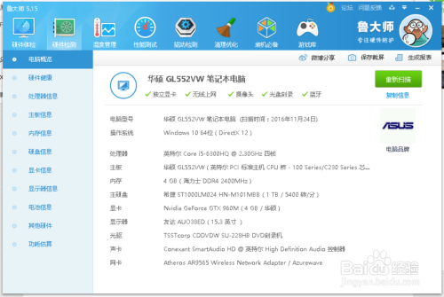1.处理器:英特尔Core i5-6300HQ @2.30GHz四核