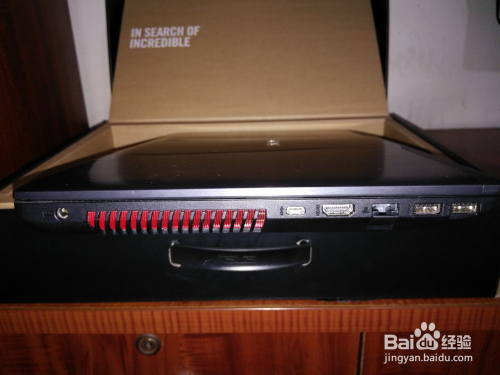 笔记本侧面是笔记本的型号华硕(FX-PRO6300),以及生产厂家防伪码预装系统信息。快递到的时候是一个大箱子,赠送鼠标、标键盘、背包、箱子最底层是背包。中间夹层是键盘,最上面就是这个盒子笔记本及套件。