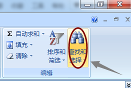 这个时候我们在工具栏的"开始"选项右侧的编辑里点击"查找和替换",如图